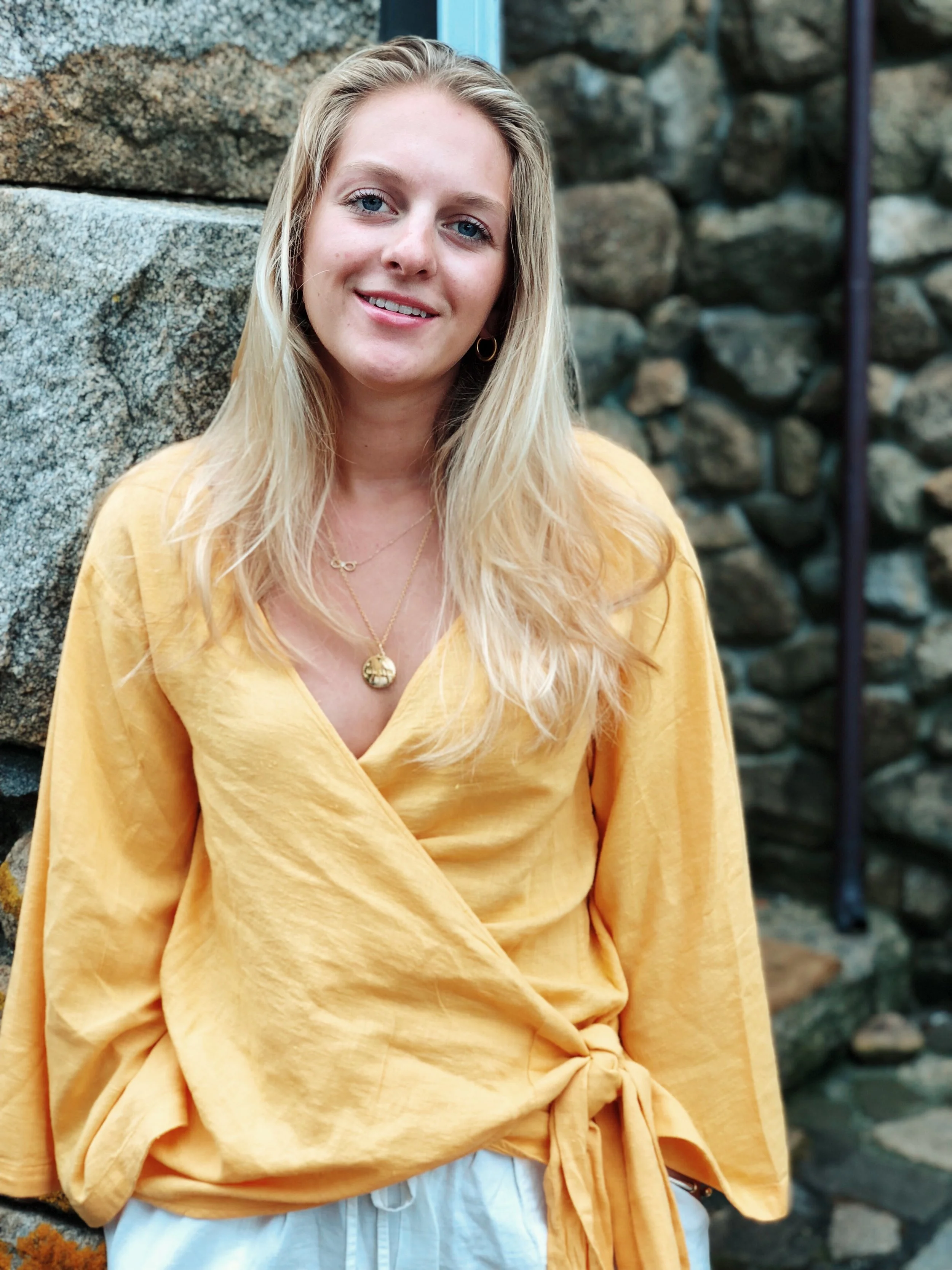 For this night, I paired the pants with this gorgeous yello linen/ cotton wrap top from Free People. I was a little tentative when I ordered this top, but I really do love it! The color is just so pretty for the summer and I love how it adds a warm toned pop to any simple outfit. The wrap trend, which if you’ve read my blog before you know I am a huge fan of, is so fun to have in a top! I love this top because it is so simple and comfortable, but also effortlessly elegant without to much effort.